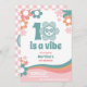 Unique girls 10th birthday party invitation! With a '10 is a Vibe' design this retro styled birthday invite encapsulates the joyful spirit of a decade lived to the fullest. Each invitation boasts a cool, smiling daisy design, matched perfectly with vibrant retro letters that make an exciting statement. The '10 is a Vibe' theme is sure to bring a smile on everyone's faces and set the mood for a fun-filled celebration.