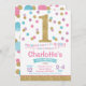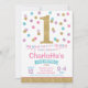 Pink, Lilac, Mint & Gold Polka Dot 1st Birthday Invitation, a perfect way to announce your child's 1st birthday Party.