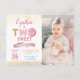Girl 2nd Birthday Two Sweet Doughnut Photo Invitation Postcard