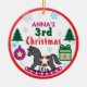 Girl 3rd Christmas PHOTO Pink Gray Horse Ceramic Tree Decoration