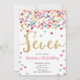 Girl 7th Birthday Hearts Confetti Rainbow Glitter Invitation