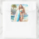 Artistic image with a girl and surfboard, who lives free with sport and fun, in a wonderful landscape of exotic nature.