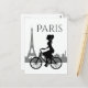 Girl and Bicycle Paris Eiffel Tower Postcard