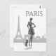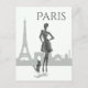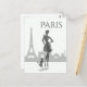 Girl and Cat in Paris with Eiffel Tower Grey Postcard