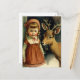 Illustration girl deer winter holiday vintage card.