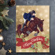 Girl and Horse Jumping Merry Christmas Golden Holiday Card