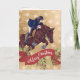 This holiday Christmas greeting card features a girl riding a brown horse jumping a Merry Christmas banner. They are set against a golden snowflake background. Inside Greeting - "Wishing You a Merry Christmas and a Happy New Year" - The greeting can be personalised to read as you wish.