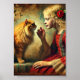 Girl and Orange Tabby Cat Wall Art, Antique Poster