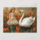 A blonde girl and a giant swan in a poppy meadow surreal fantasy art