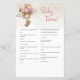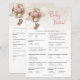 Get ready for an adventure with the "Girl baby bear pink brown balloons Baby Trivia" game card designed specifically for the "we can bearly wait" theme at your girl baby shower! This charming card is adorned with adorable pink and brown balloons, perfect for a celebration filled with excitement and fun. So, gather your guests, put on your explorer hats, and get ready to test your knowledge with a hint of cuteness at the baby shower like no other. Let the games begin!