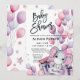 Girl Baby Elephant Pink Balloons Cute Baby Shower Invitation