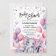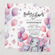 Girl Baby Elephant Pink Balloons Cute Baby Shower Invitation