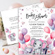 Girl Baby Elephant Pink Balloons Cute Baby Shower Invitation Postcard