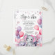Girl Baby Elephant Festive Pink Blue Balloons Welcome Baby SIP AND SEE Invitation Card. Celebrate the upcoming arrival of your precious baby with this festive, chic and beautiful Invitation card featuring colourful watercolor balloons, festive gold glittering stars and hearts, pretty gift sets wrapped with ribbons and floral decorated mails . All the texts are pre-arranged for you to personalise easily and quickly with your baby shower details.