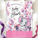 Girl Baby Elephant Pink Balloons Sweet Baby Shower Invitation
