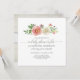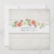 Trendy, muted, ethereal colour palette of assorted blush pink, deep burgundy and rose pinks, paired with soft white, charcoal, blued greens and grey. Simple, clean lines of white and purple rose floral and leaf swag on the front and soft grey wooden background with a band of white linen texture and a complimentary border of flowers on the reverse side has a place for your RSVP and Registry information. Art copyright Audrey Jeanne Roberts, all rights reserved.