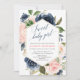 Girl baby shower blush pink navy blue floral invitation