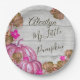 Rustic Girl Baby Shower Grey Wood Autumn Pink Pumpkin Paper Plate. Custom baby girl's Name