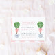 Handpainted topiary ball in a ginger jar planter adorned with floppy pink bow for this classic baby shower invitation design.