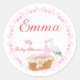Girl Baby Shower Stickers: Charming Floral Border Classic Round Sticker