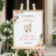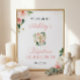 Blush Pink Floral Gold Cross Girl Baptism Celebration Sign Poster.