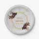 Girl Baptism Burgundy Peonies Marble Gold Floral Paper Plate
