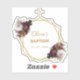 This elegant floral geometric baptism design combines the trends of 2019: geometric and metallic (gold). The geometric, irregular gold frame has flower bouquets of burgundy and white peonies up and down over two gold hexagons that overlay, with a gold cross on top. The Name is written in an elegant calligraphic script. All text has a golden colour, like the gold frame.