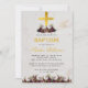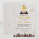Girl Baptism Gold Cross Burgundy Peonies Marble Invitation