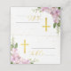 Girl Baptism Pink Flowers and Gold Gross Place Card