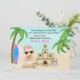 This cute beach baby shower invitation for girls features a cute beach baby sipping her lemon aid. She is standing with her impressive sandcastle and surfboard surrounded by tropical palm trees. Some graphics by artwork©delightful-doodles.com and CherylSeslarDesigns.com at DigiWebStudio.com. *