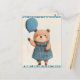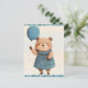 Girl Bear with Blue Plaid Dress and Balloon Postcard