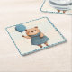 Girl Bear with Blue Plaid Dress and Balloon Square Paper Coaster