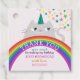 Cute, magical, kawaii girl Birthday thank you favour tag with rainbow, colourful stars and cat unicorn.