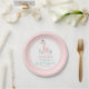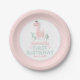 Girl Birthday Watercolor Pink & Turquoise Dinosaur Paper Plate