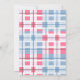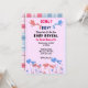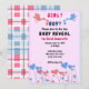 Join us for the baby reveal party. Is it a girl or a boy? Pink and blue storks with heart flowers. Replace the information with your own. The back of this flat card has a pink and blue pattern.