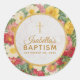 Girl Christening Rose Wreath Floral Gold Cross Classic Round Sticker