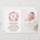This modern, elegant christening invitation features your child's photo and a beautiful floral watercolor wreath of pink garden flowers around a pink cross, perfect for your daughter's special day. MATCHING items available in our store.