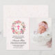 Girl Christening Watercolor Pink Floral Invitation