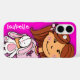 Girly cuddles pink case cute modern graphic girls case. Girl clutching her lucky white bunny. This case reads Isabelle or personalise with your child's name. Original design by Sarah Trett for www.mylittleeden.com