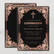 Girl Confirmation Pink Black Elegant Vintage Cross Invitation
