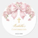 Girl Confirmation Pink Bow Faux Gold Cross Floral Classic Round Sticker