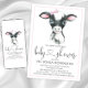 Cow baby girl shower invitations with cute watercolor baby cow calf wearing a pink bow on a pink polka dot background. These adorable cow baby shower invitations are easily customised for your event by simply adding your details. You can also add a background colour.