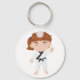 Karate is a great activity to be involved in. This design has a girl doing karate. She is standing face on and the girl is showing off a karate pose. She is dressed in the full karate outfit. This girl doing karate design looks great on this keychain. Perfect for yourself or as a gift
