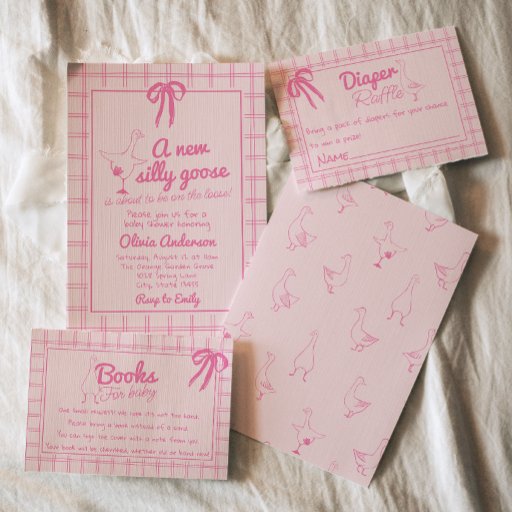 Girl Drawn Pink Silly Goose Ribbon Baby Shower Invitation