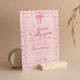 If you looking for an elegant unique and easy customisable Girly girl baby shower invitation this is perfect for you. As you see it features a retro handwritten script of a little silly goose is about to be in the loose in vivid pink. And hand drawn goose and a ribbon. And pink border frame and pink chequered squares gingham. All vivid pink and on pale pink background. Very easy to customise and use. So grab it and male your invites very engaged.