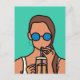 Funky colourful graphic of a teen girl drinking bubble tea. Bright blue modern colour design cool and trendy.