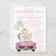 Girl Drive By Baby Shower Cute Animals in Car Invitation