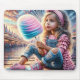 Girl Eating Carnival Cotton Candy Mouse Pad