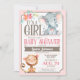 Girl Elephant and Monkey Baby Shower Invitation