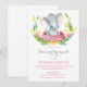 Girl Elephant Baby Shower by Mail Invitation. Virtual Baby Shower Invitation. Long Distance. Pink and Grey Card. Girl Baby Shower Invite. Watercolor Floral Flower and Leave. White Background. For further customisation, please click the "Customise it" button and use our design tool to modify this template.